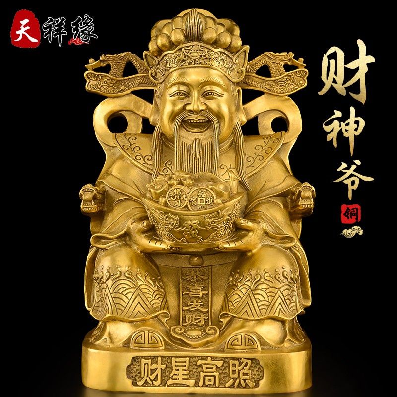 天祥緣 銅財神爺佛像擺件黃銅文財神居家供奉家用辦公室店鋪開業禮品 20號元財神 黃銅色