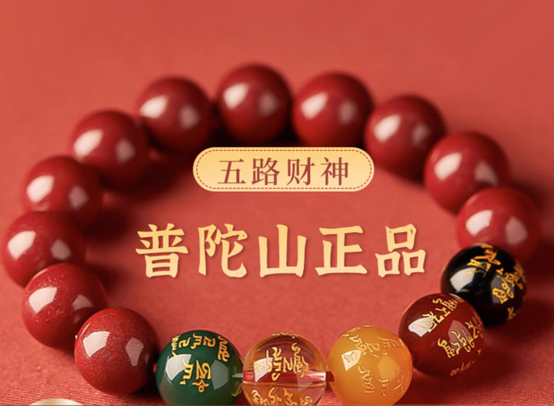 普陀師傅2026年五路財神手串本命年招財護身符生蕭硃砂轉運手鍊