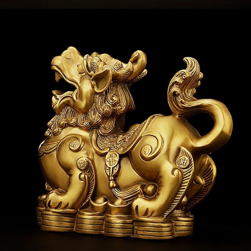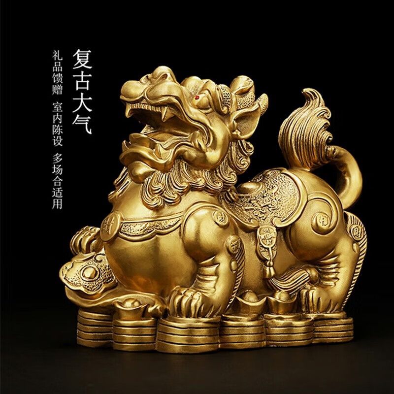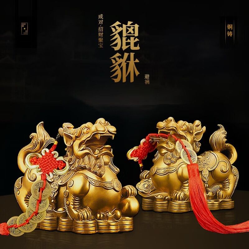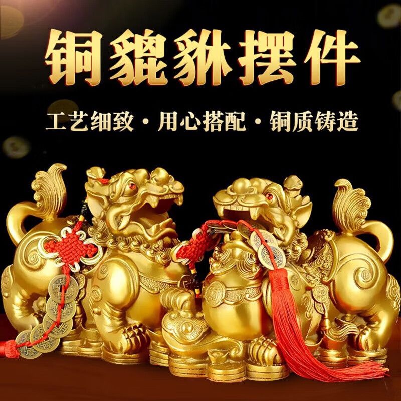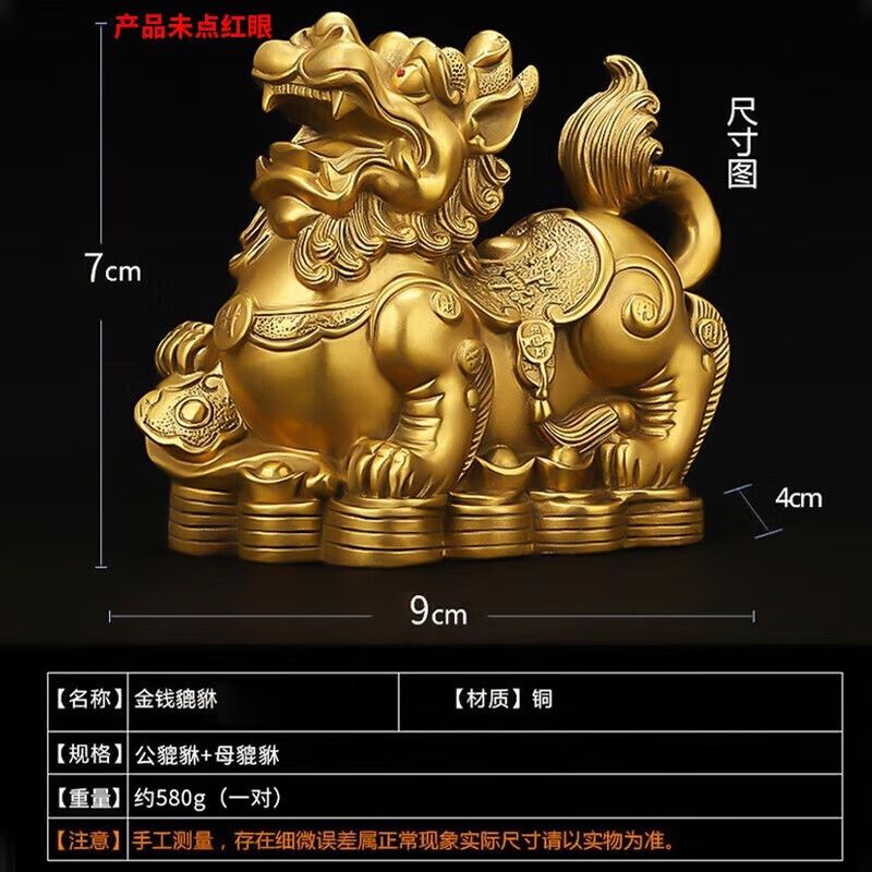 茨格曼銅貔貅擺件帶五帝錢純禮品開業辦公室店鋪客廳裝飾一對 金錢貔貅一對