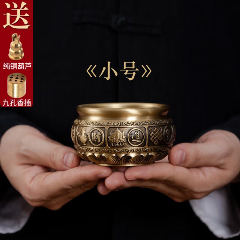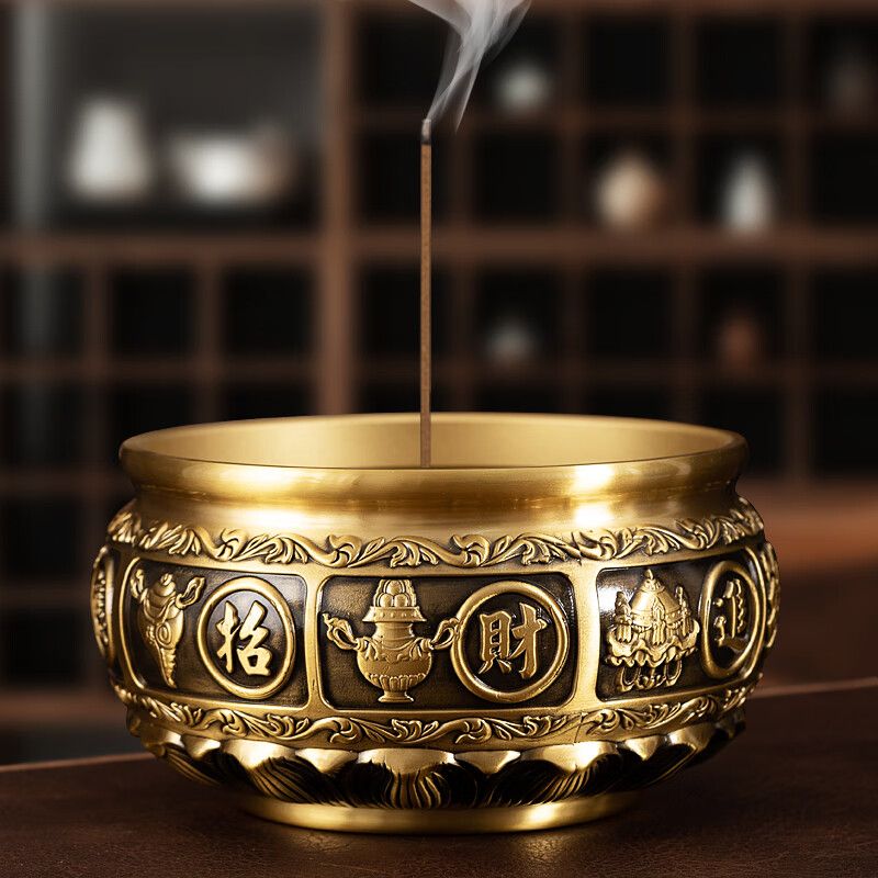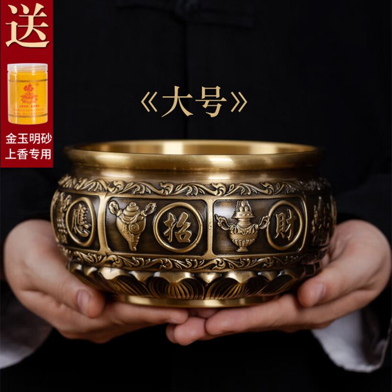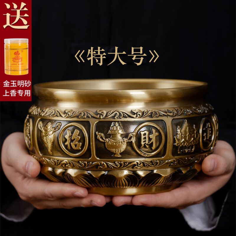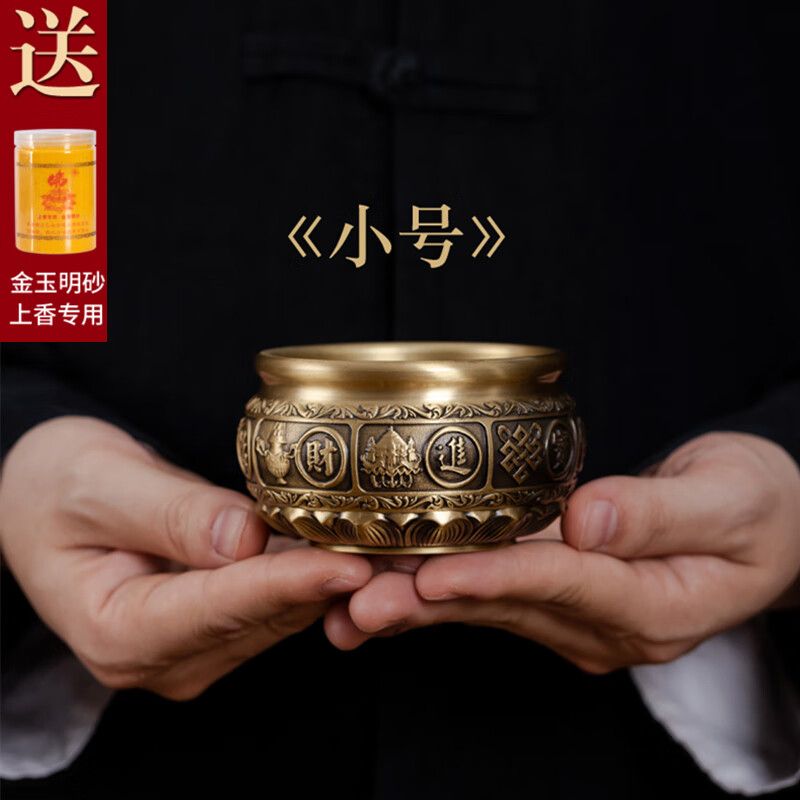 黃銅香爐家用室內供奉爐插香爐供佛燒香爐焚香爐上香爐大號宣德爐 進寶有求必應+500克香沙