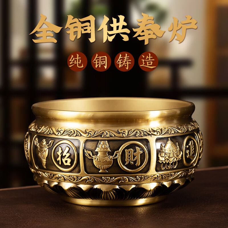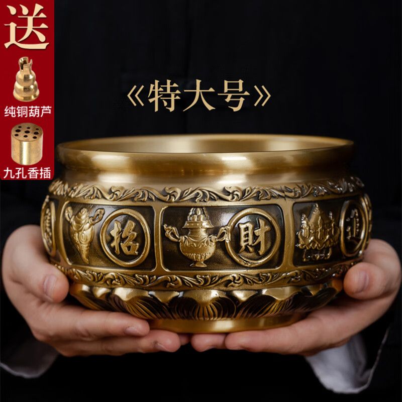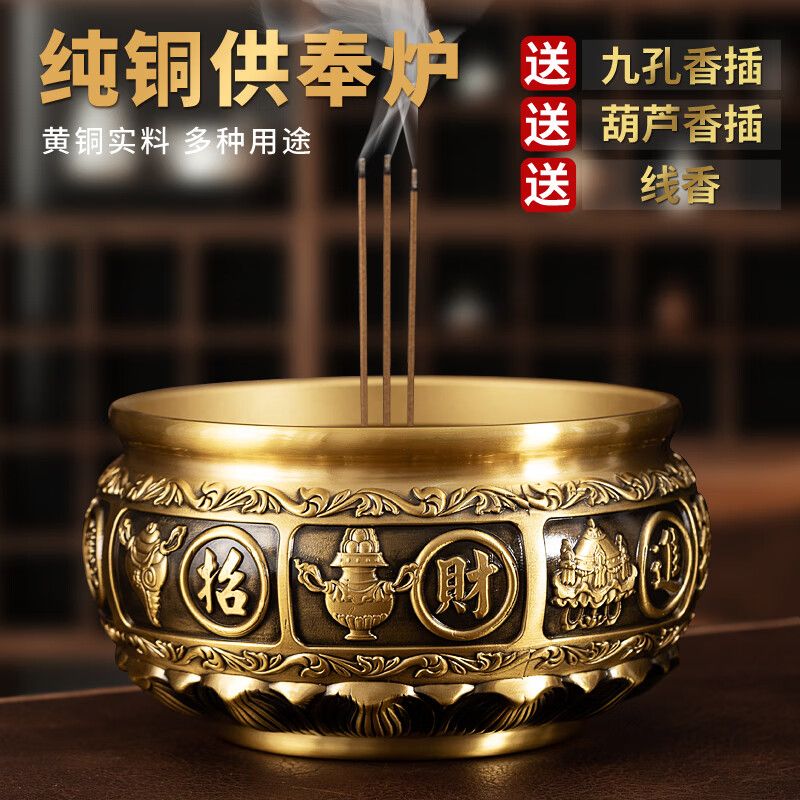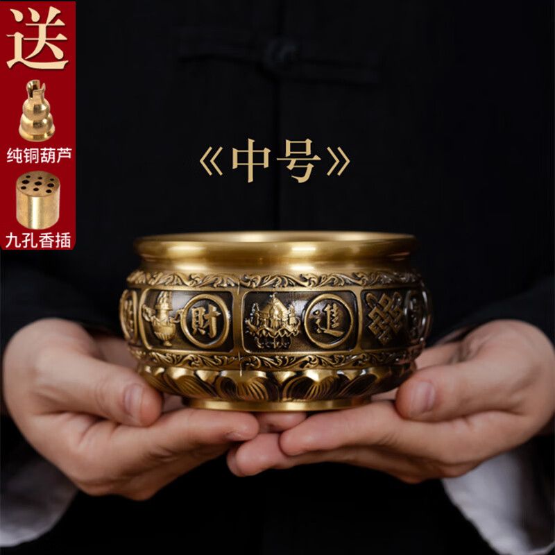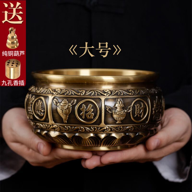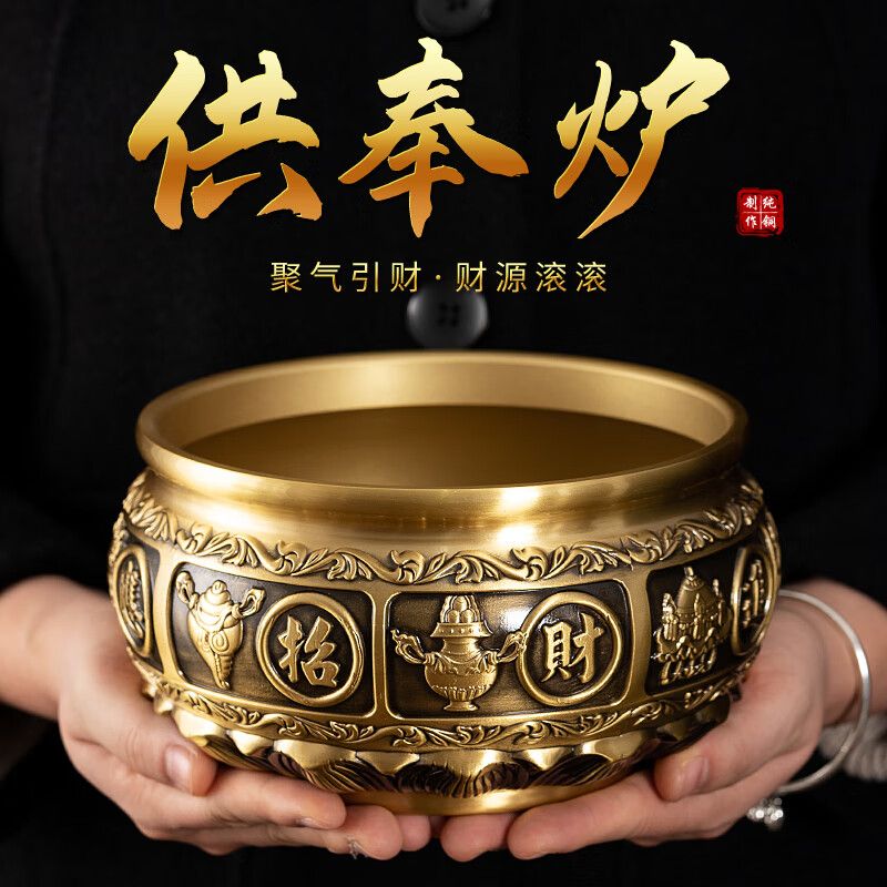 黃銅香爐家用室內供奉爐插香爐供佛燒香爐焚香爐上香爐大號宣德爐 進寶有求必應+500克香沙